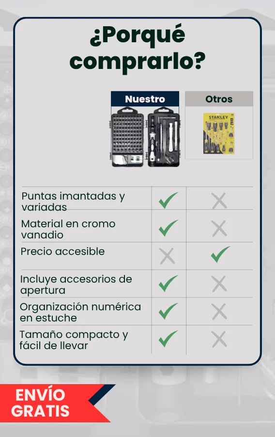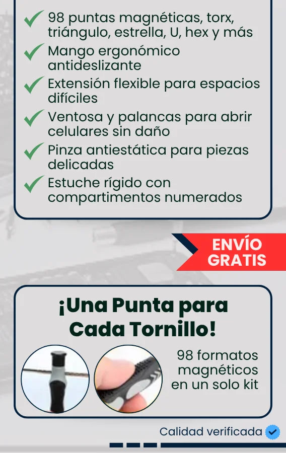 Todas las puntas están imantadas, lo que evita que los tornillos pequeños se caigan o se pierdan mientras trabajas.