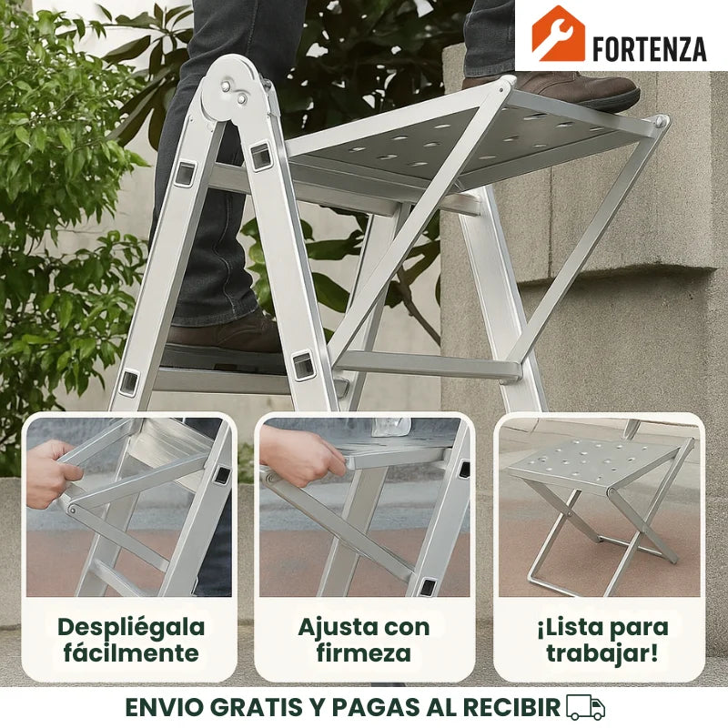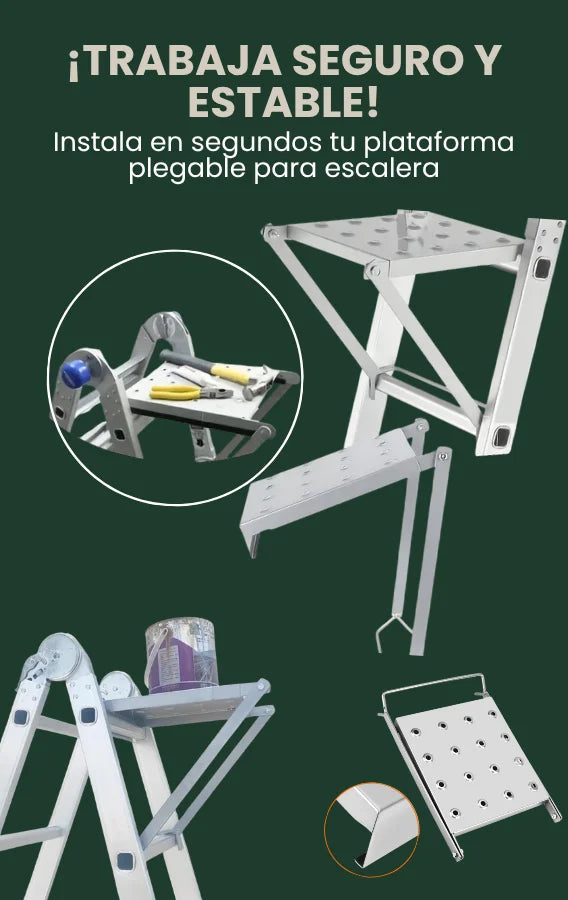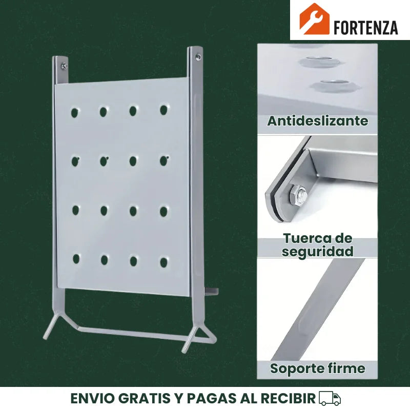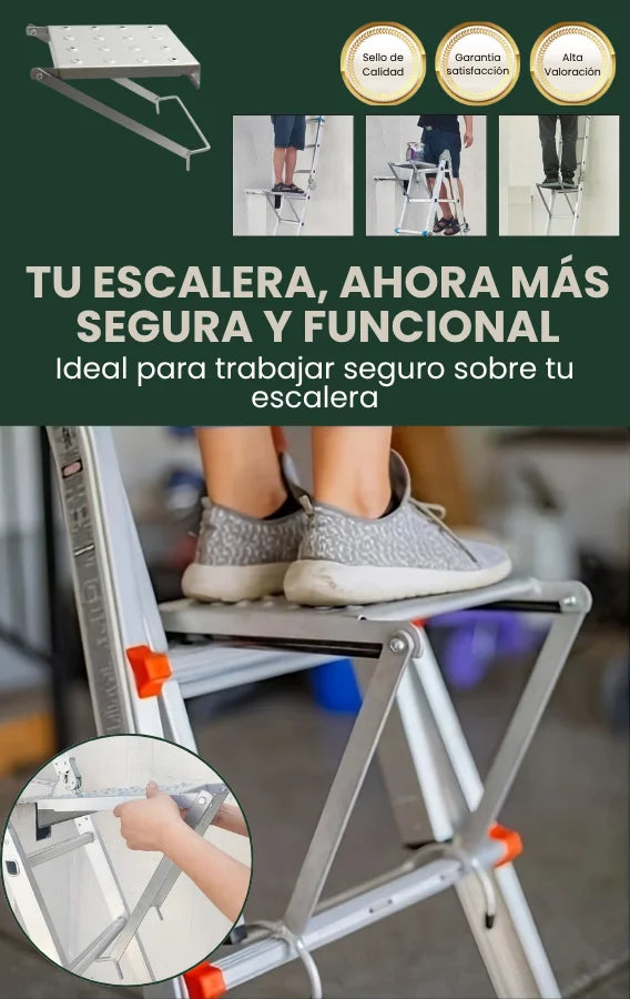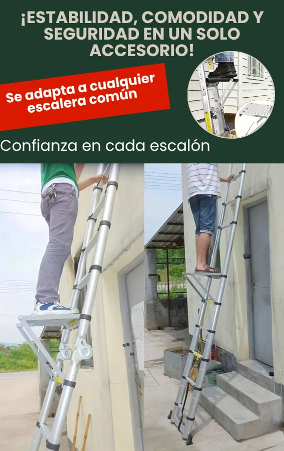 Está diseñada para escaleras de tijera con peldaños paralelos. No funciona con escaleras tipo extensión o de un solo lado.